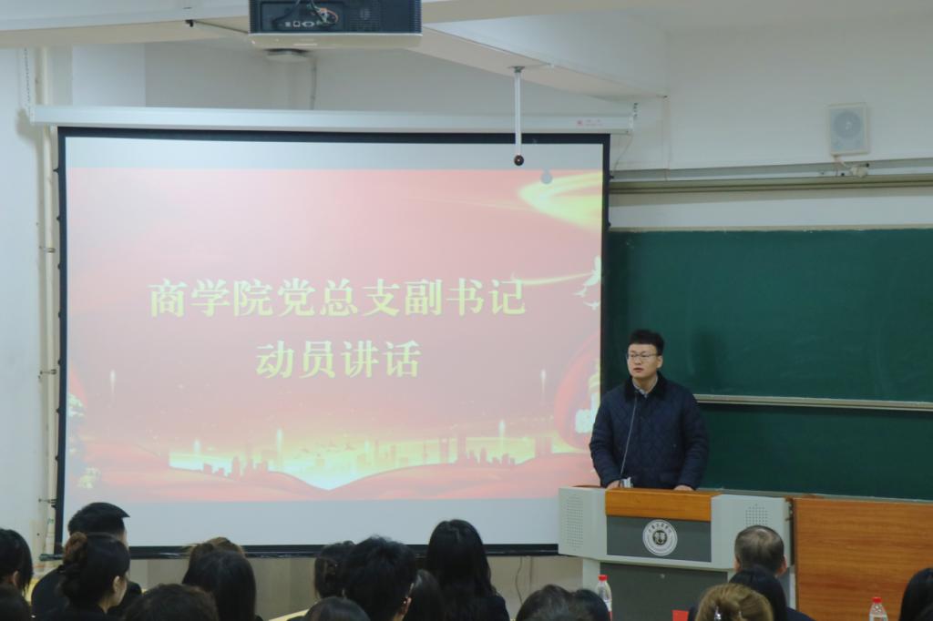 学员代表发言后,商学院党总支副书记、副院长王皓田上台作动员讲话,首先向本次参与培训的新学员表示热烈祝贺。他在讲话中强调,全体学员一方面要在党校学习期间扎实夯实理论根基、持续提升党性修养,努力向合格党员标准看齐;另一方面要主动融入学校迎评大局,在课堂学习、实践活动等各个环节发挥模范带头作用,真正实现个人成长与学校发展的同频共振。