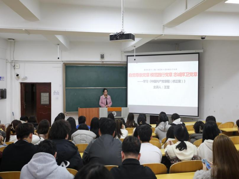 最后学生党支部书记王莹老师以“学习中国共产党章程”为题,用清晰逻辑和详实案例,从党章发展历程、核心内容、重大意义等方面展开讲解,重点解读党的性质、宗旨、组织原则等关键章节,引导学员深刻认识党章的权威性和指导性,明确入党初心与方向,树立正确入党动机。