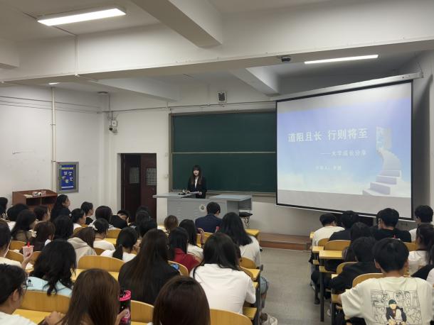 2025年9月13日下午,长春光华学院商学院于二教116教室开展新生大学适应教育讲座,由张立早老师、王莹老师、陈莉老师主讲,2025级全体新生参与。各位老师以“大学适应教育——在大学成为最好的我们”为主题,讲解宿舍规范、校园设施分布及门禁等规定,对比高中与大学学习差异,强调自主学习和时间管理,还分析升学与就业路径,引导新生规划未来,互动热烈。此次讲座是学院新生入学教育的重要环节,后续学院还将开展多类活动,助力新生适应大学生活。