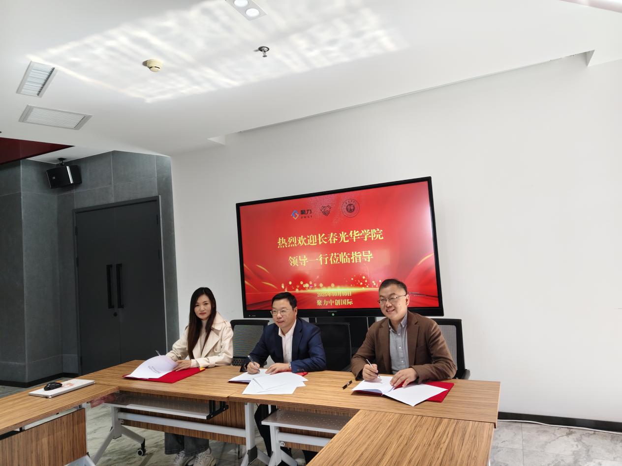 2025年10月10日上午,长春光华学院商学院院长周佰成、副院长赵畅、副院长李晟璐、国际经济与贸易系主任王荣等一行人赴聚力中创国际电子商务(长春)集团有限公司开展访企和签约活动。