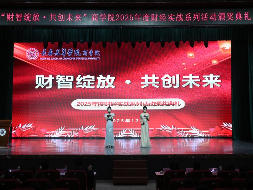 为凝练实战育人成果,表彰在专业赛道上勇毅前行的商院学子,传承“笃学、精业、创新、致远”的学风精神,商学院于12月2日13:30,在北校区艺术剧场举办“财智绽放·共创未来”2025年度财经实战系列活动颁奖典礼。商学院院长周佰成,副院长赵畅、李晟璐,党总支副书记、副院长王皓田,商学院各专业系主任、全体辅导员,以及获奖代表、学生观众代表共同参与本次活动。