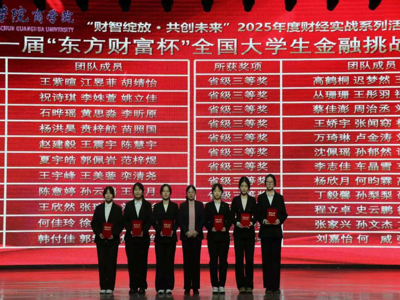 随后,进入颁奖环节,由学院领导、各专业系部主任依次为在财经实战系列活动中斩获佳绩的个人及团队逐一颁奖。获奖学子们身着正装、精神饱满,从领导手中接过荣誉证书,脸上洋溢着自豪与喜悦,现场掌声此起彼伏,既是对获奖者的祝贺,也凝聚着全院师生对财经教育实践的殷切期许。