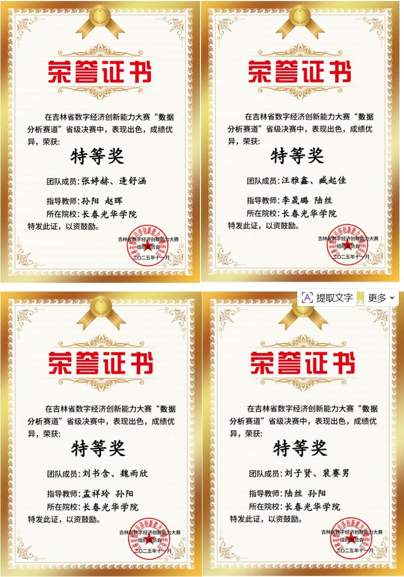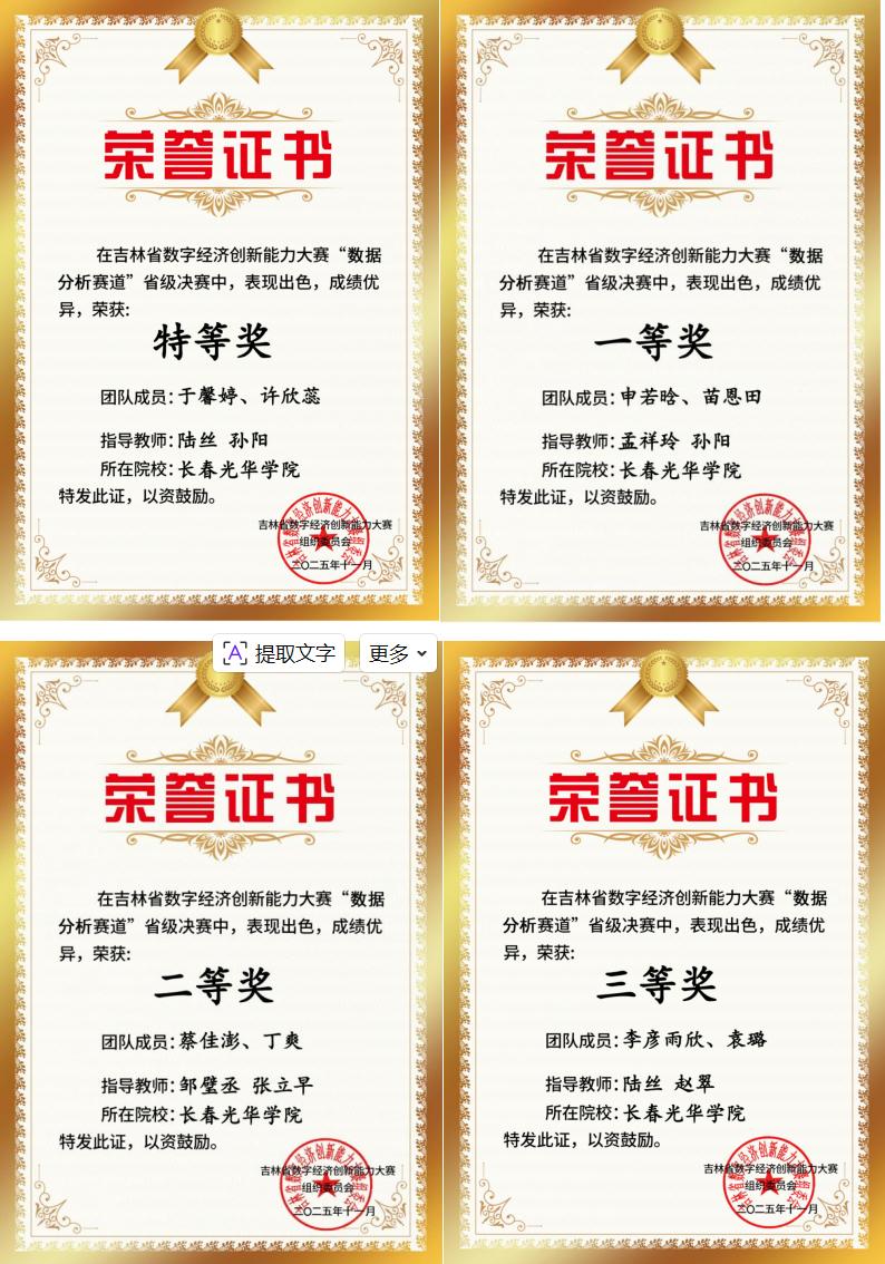2025年11月,2025吉林省数字经济创新能力大赛圆满举办。商学院组织学生参加数据分析赛道,围绕数据处理等核心任务展开比拼,实现理论与虚拟仿真实践的深度融合。参赛学生凭借扎实的专业能力与高效的团队协作,斩获15项省级佳绩,其中特等奖5项、一等奖5项、二等奖3项、三等奖2项。