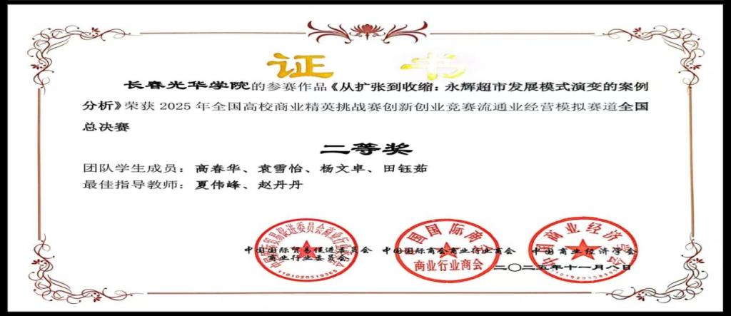 此次优异成绩的取得,不仅是对我校商学院实践教学成果的充分肯定,更是对参赛学子专业能力与创新精神的认可。未来,我校商学院将继续以各类高水平学科竞赛为抓手,深化实践教学改革,加强创新创业人才培养,鼓励更多学子在竞赛中锤炼本领、增长才干,为社会输送更多高素质的流通业领域专业人才。