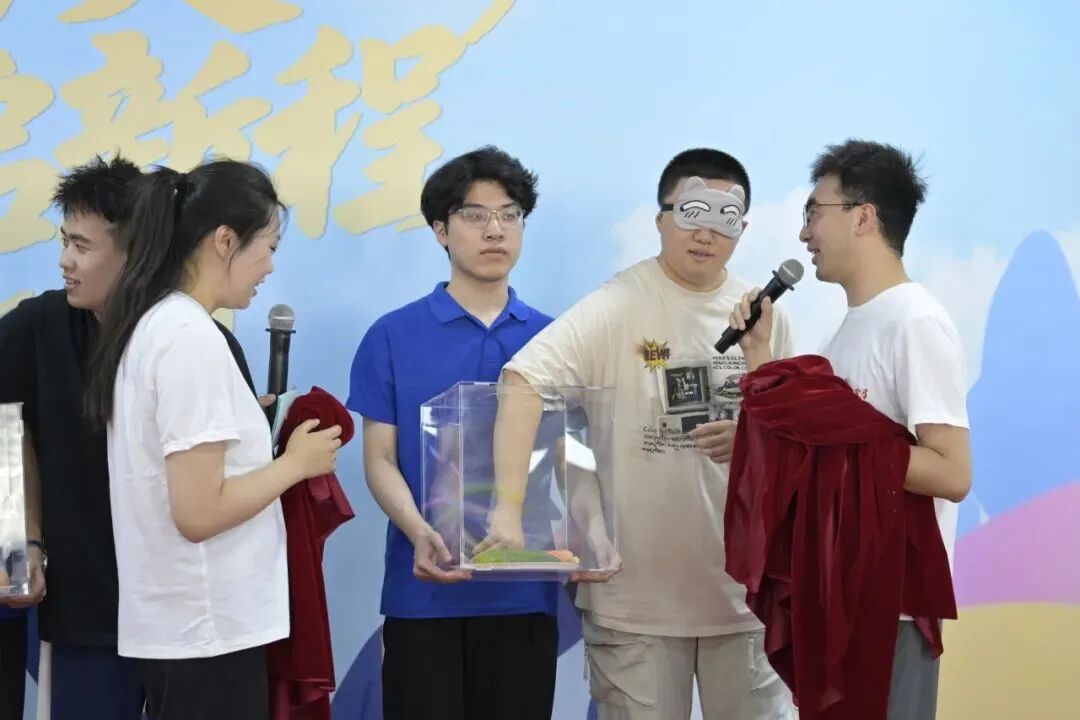“盒中探秘,福语成真”互动环节,各院毕业生代表通过默契配合赢取象征美好祝愿的福袋。