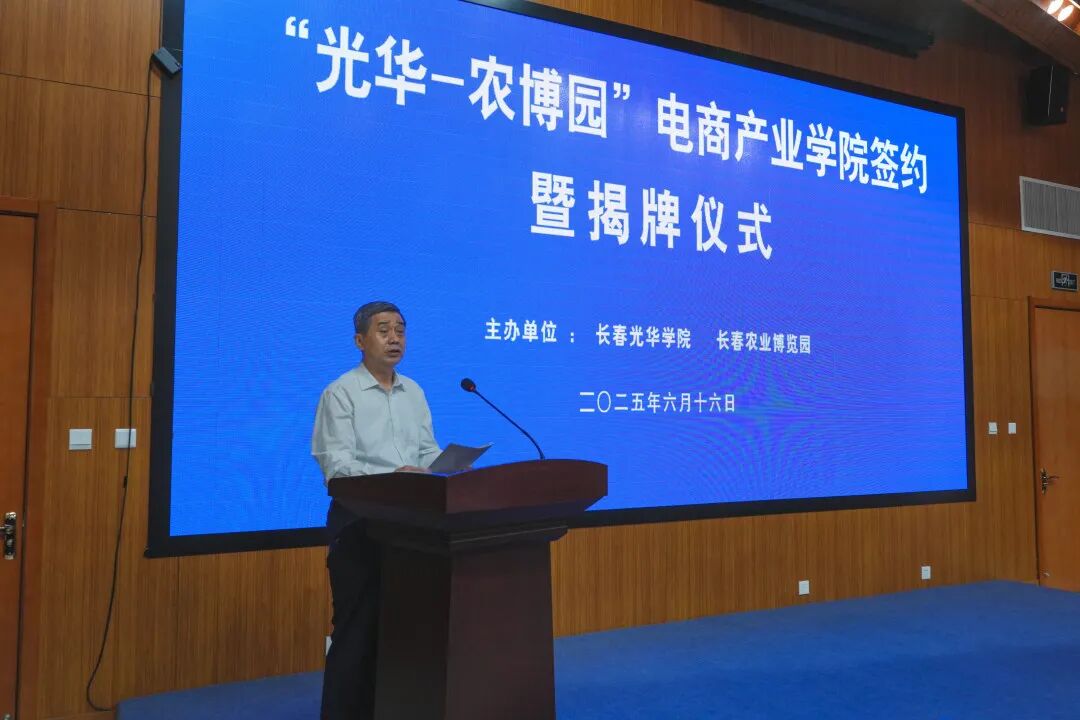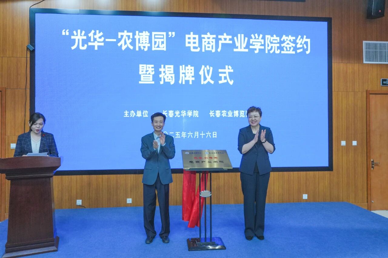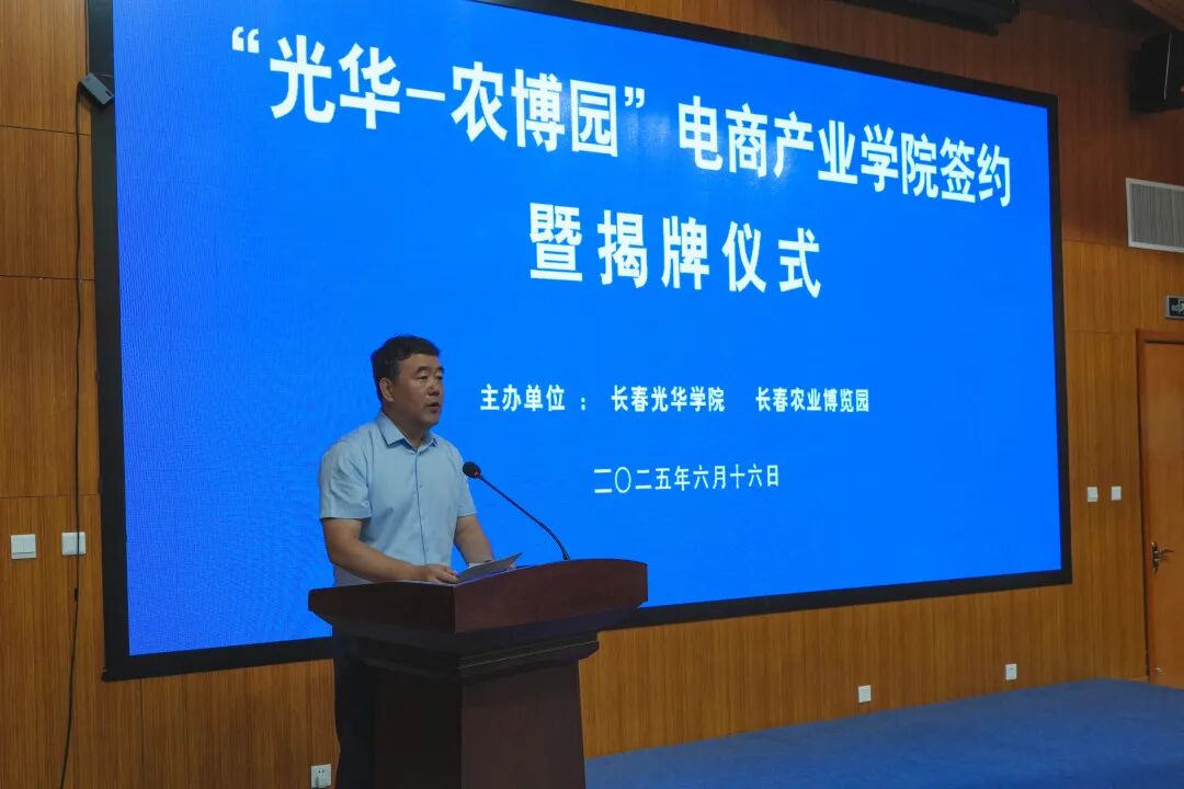 6月16日上午,长春光华学院与长春农业博览园共建“光华-农博园”电商产业学院签约暨揭牌仪式在长春农业博览园隆重举行。