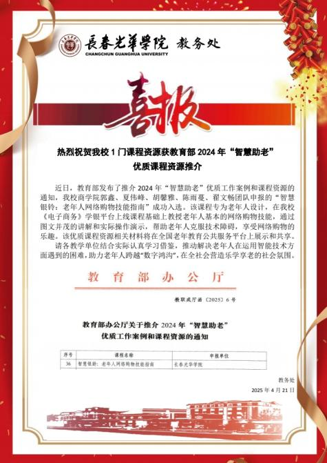 (3)《智慧银龄:老年人网络购物技能指南》获批教育部2024年“智慧助老”优质课程资源